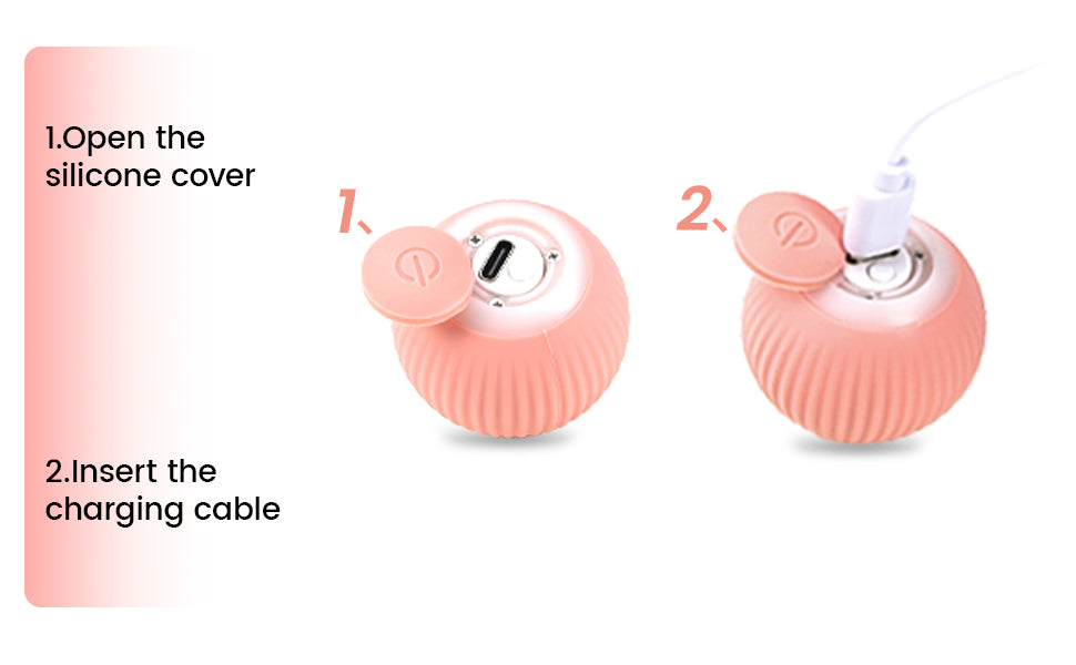 - The interactive cat ball provides a more convenient USB charging interface, which saves you the tedious work of frequently changing batteries. The toy ball can play for 4 hours in mild mode, and only needs to be charged for 1 hour at a time. If the kitten constantly interacts with the ball, the ball will power will be consumed faster